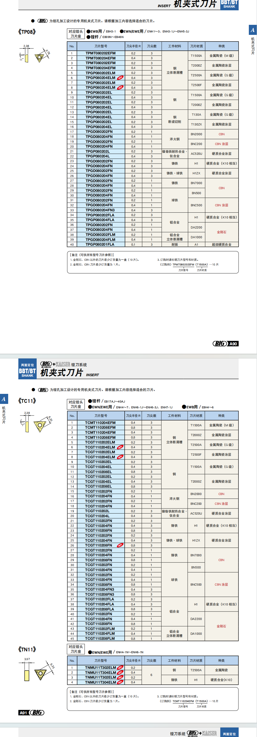 日本BIG大昭和镗刀片 TPGP080202EL T2000Z