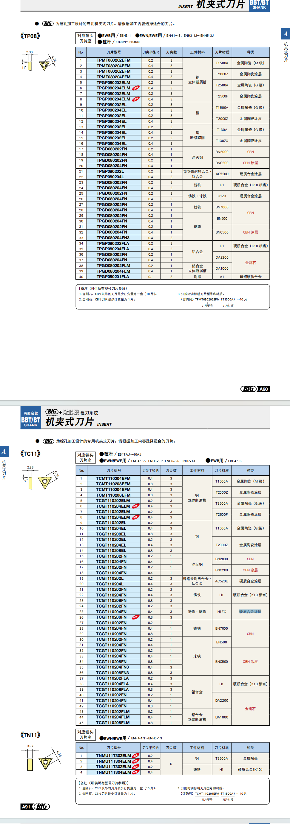BIG刀片 TPGD080204FN H1ZX 硬质合金涂层